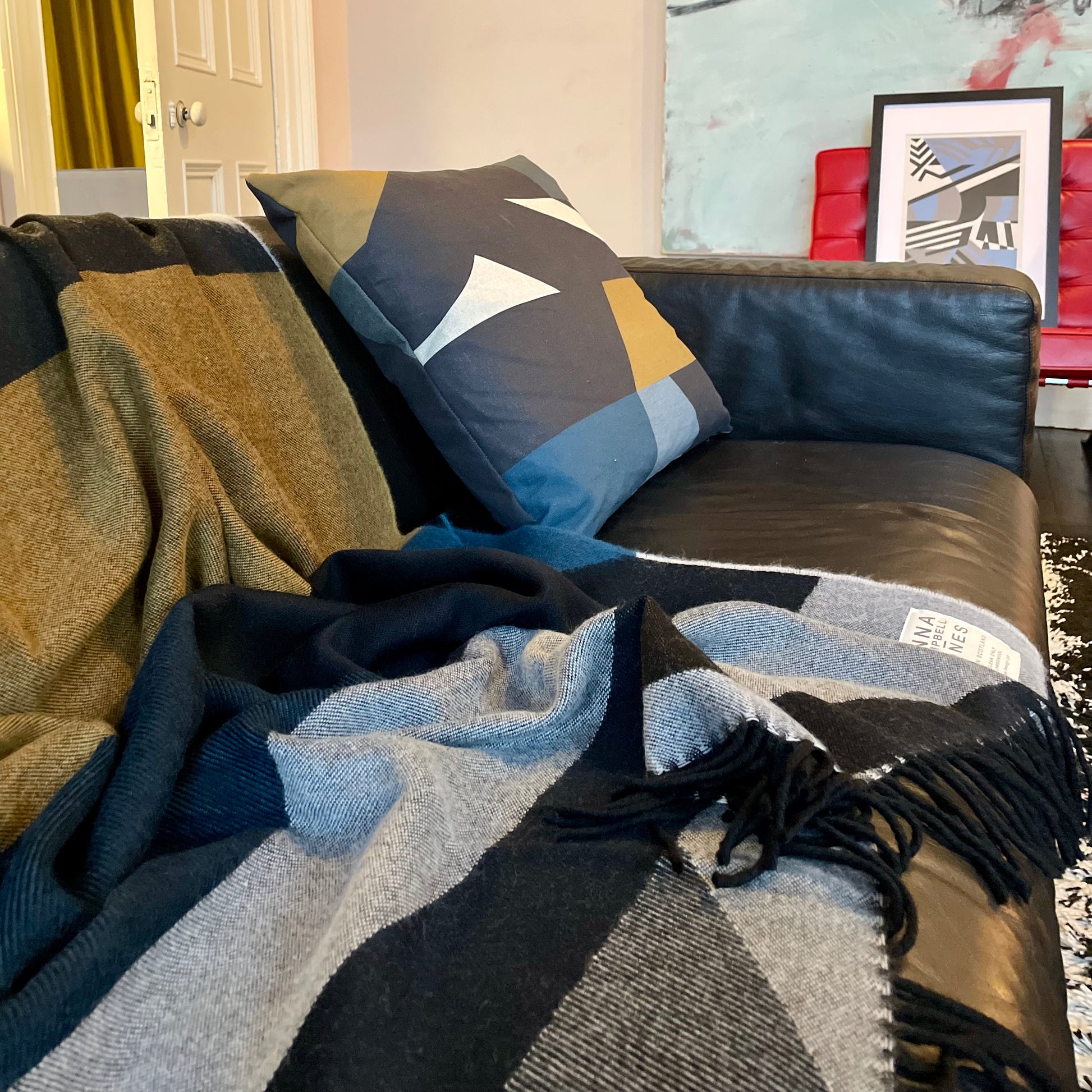 Elevate your home , or your outfit, with the stormy blend of off-black, teal and mustard tones found in the Forth Throw. Inspired by the groundbreaking art of Dazzle camouflage, this design brings together geometric contemporary aesthetics and natural comfort