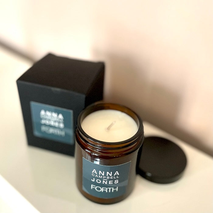 The soy wax Forth Candle introduces radiant top notes of citrus that shift into a heart of exotic jasmine intermingled with translucent white flowers. These elements are underpinned by opulent amber undertones with cedarwood, patchouli, vanilla, and sultry musk notes
