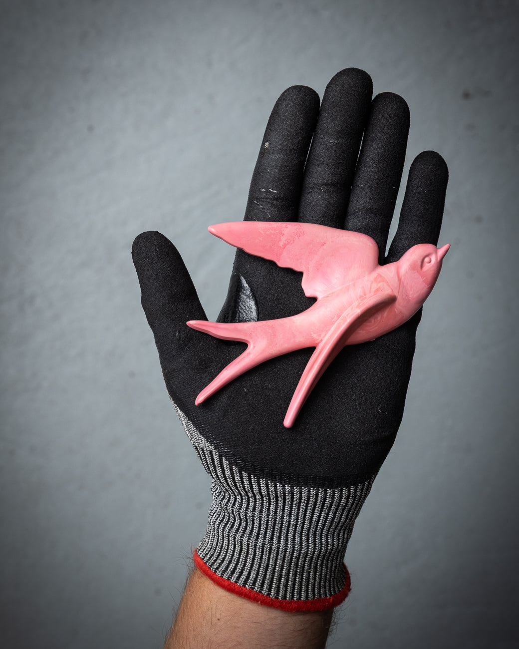 We have created wall ornaments in the form of flying swallows inspired by Anna's tattoos & a small cast metal wall ornament she found in a church fete more than 40 years ago, which has been hanging in her home ever since