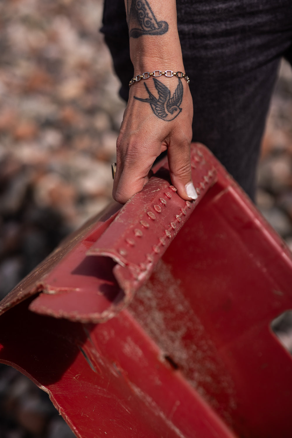We use broken fish boxes sourced from different beaches and collected during our beach cleans. The old boxes are collected, washed, then shredded before being moulded into swallows in Scotland. You can see that the colour of the swallow comes from the colour of the box collected to make it