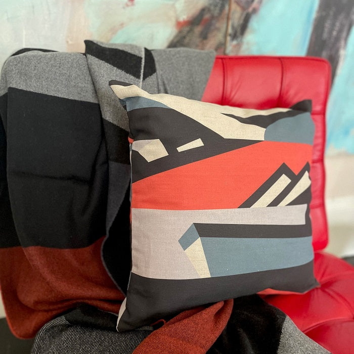 Inspired by the groundbreaking art of Dazzle camouflage this throw effortlessly combines soothing shades of grey with a fresh pop of bright coral,