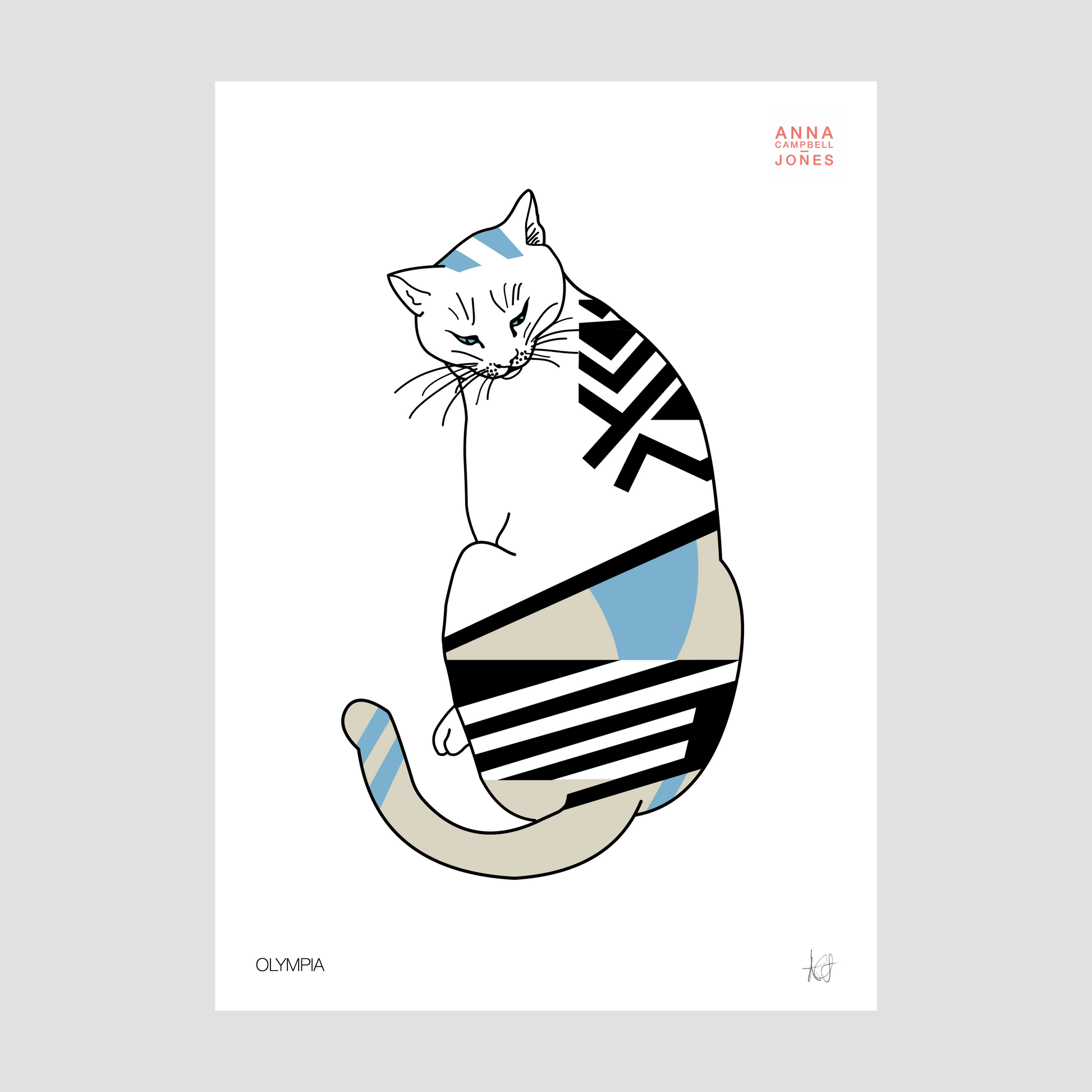 Olympia has been decorated with my Olympic print pattern, I see her as a haughty indoor cat, this princess knows she looks beautiful from every angle and always manages to be just out of reach