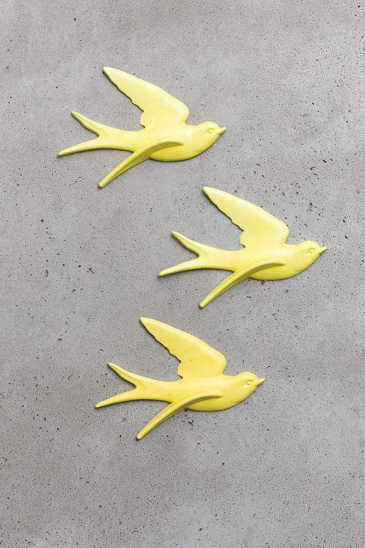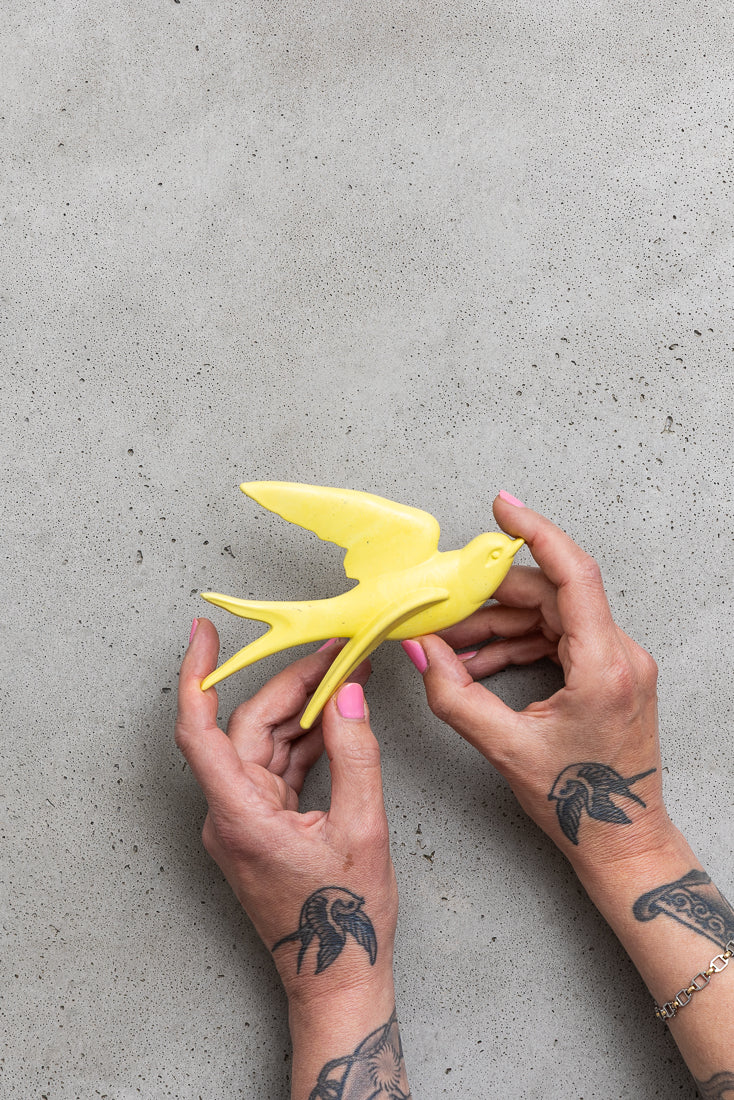 We have created wall ornaments in the form of flying swallows inspired by Anna's tattoos & a small cast metal wall ornament she found in a church fete more than 40 years ago, which has been hanging in her home ever since